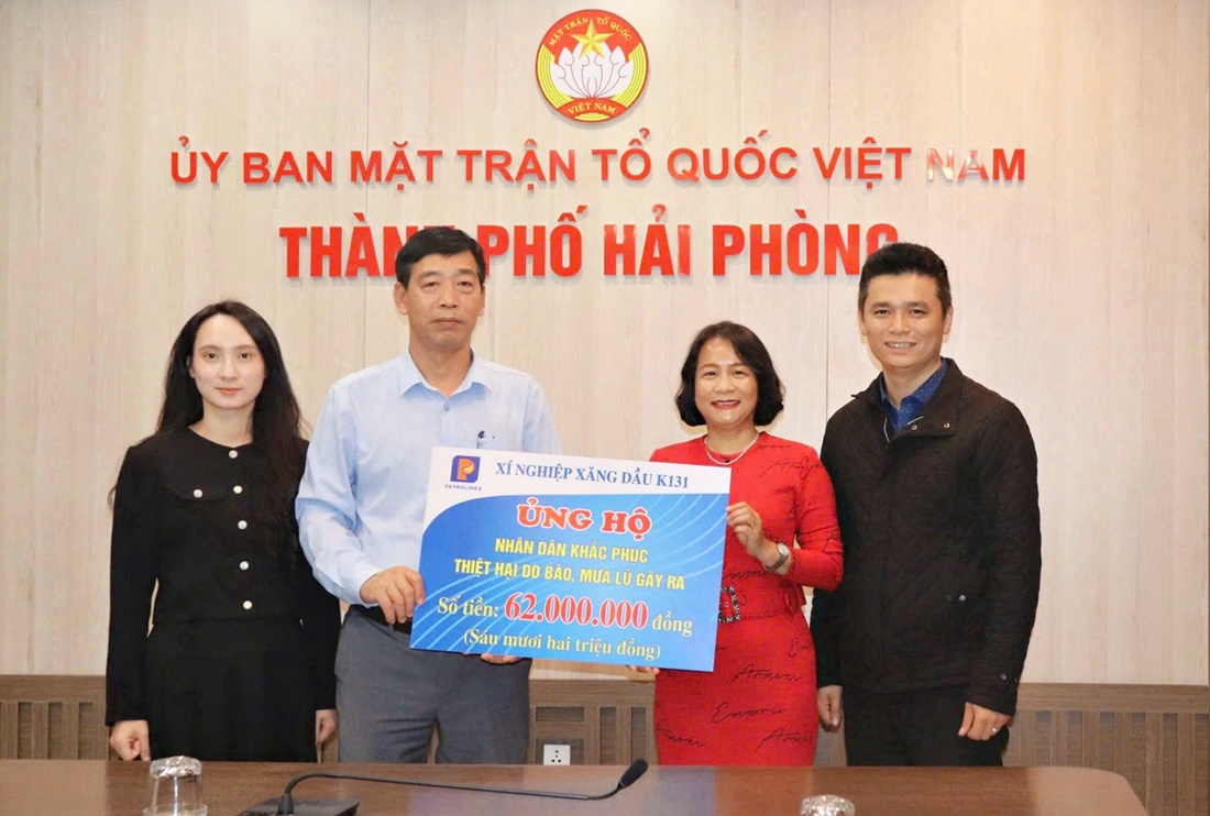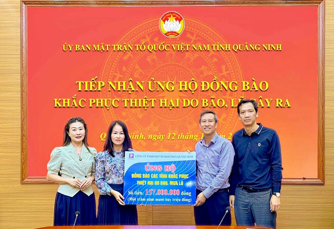 Theo đó, 162 triệu đồng là số tiền do CBCNV-LĐ Xí nghiệp Xăng dầu K131 và Xí nghiệp KVXD K132 đóng góp được chuyển về Mặt trận Tổ quốc Việt Nam thành phố Hải Phòng; Số tiền còn lại do CBCNV-LĐ các Đơn vị khu vực Quảng Ninh (Văn phòng Công ty, Cảng dầu B12, Xí nghiệp KVXD K130) đóng góp được Petrolimex Quảng Ninh ủng hộ đồng bào chịu ảnh hưởng bởi thiên tai thông qua Mặt trận Tổ quốc Việt Nam tỉnh Quảng Ninh.