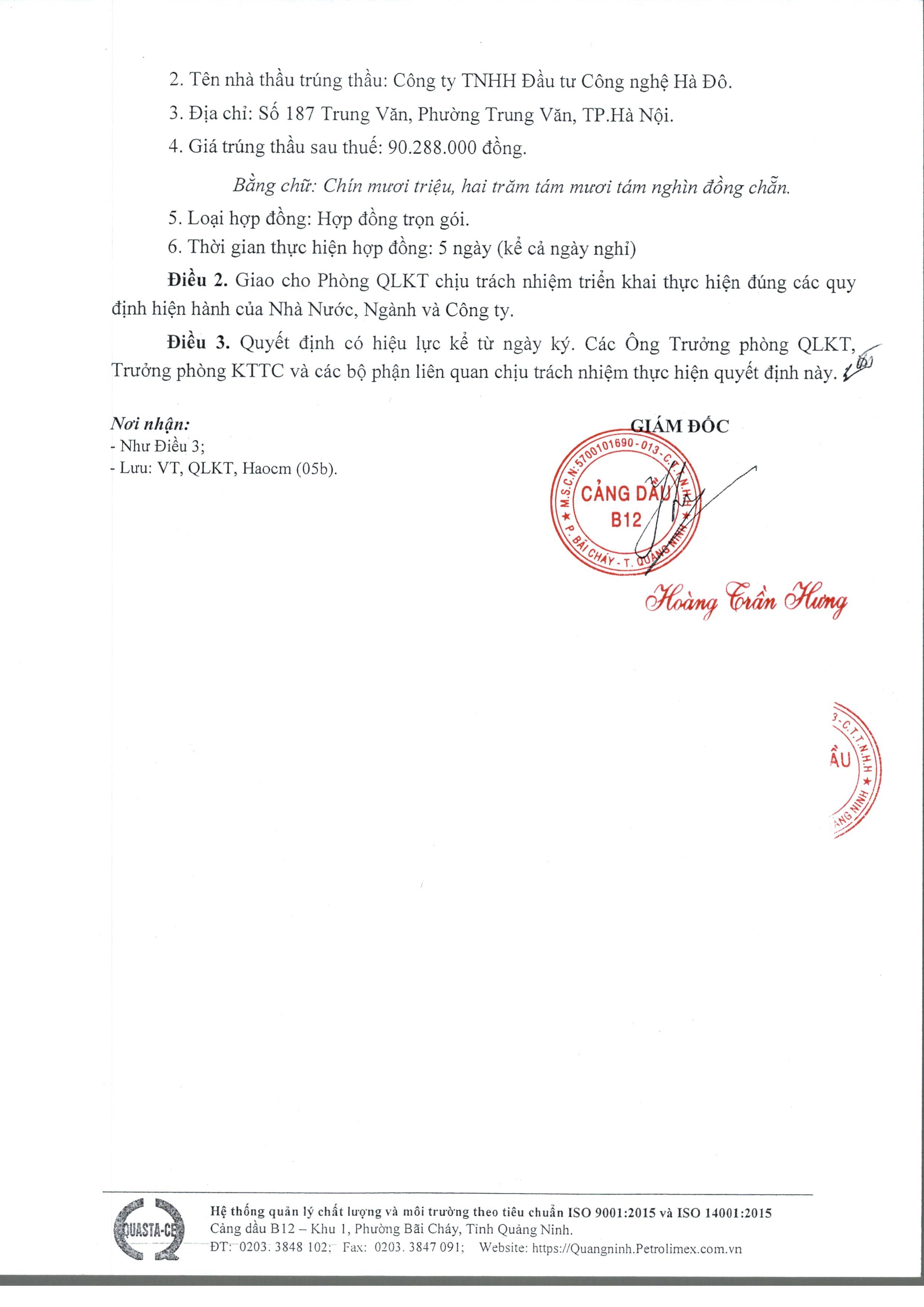 CÔNG TY TNHH MTV PETROLIMEX QUẢNG NINH PETROLIMEX QUANG NINH