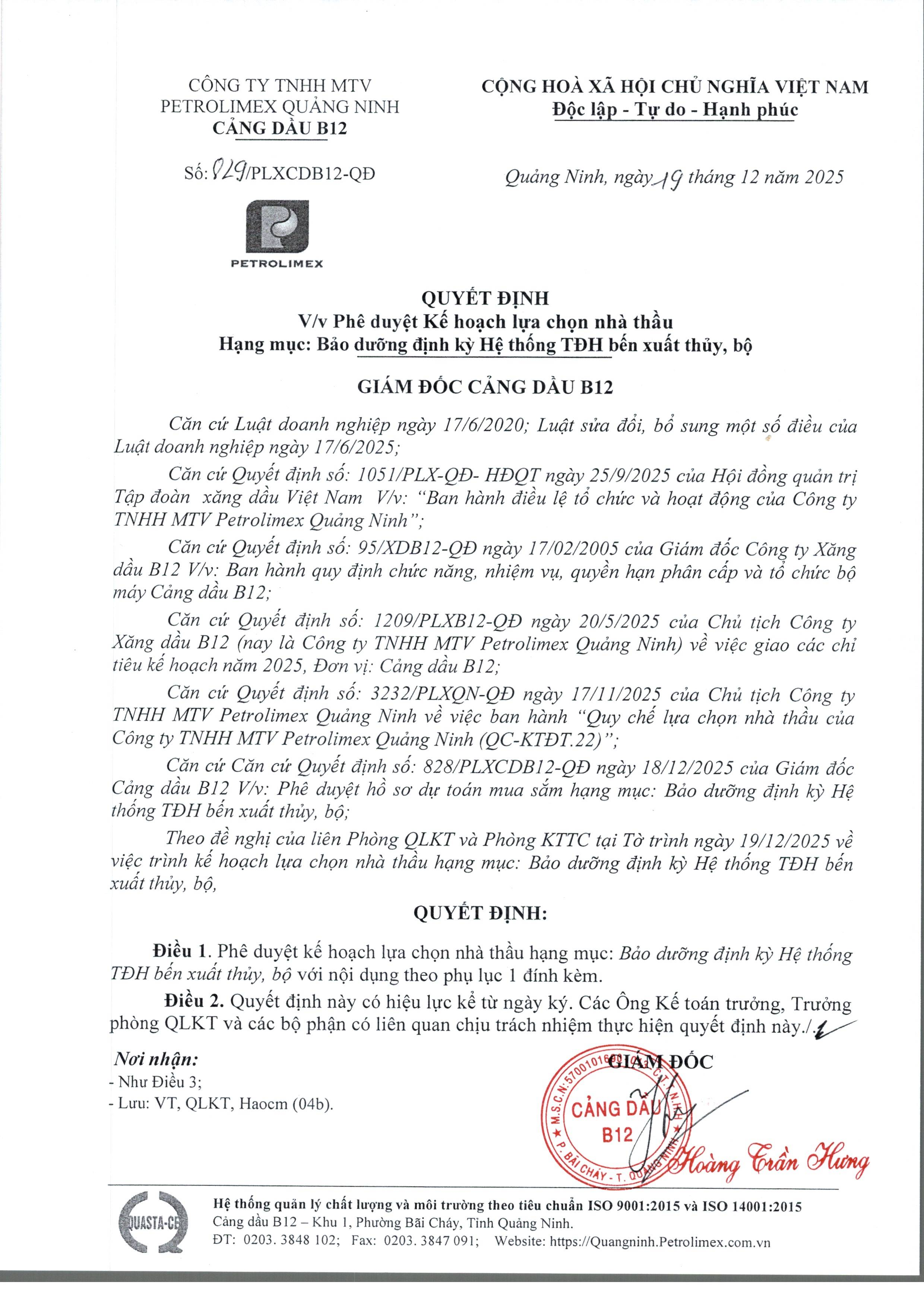 Nguồn: Cảng dầu B12Petrolimex Quảng Ninh