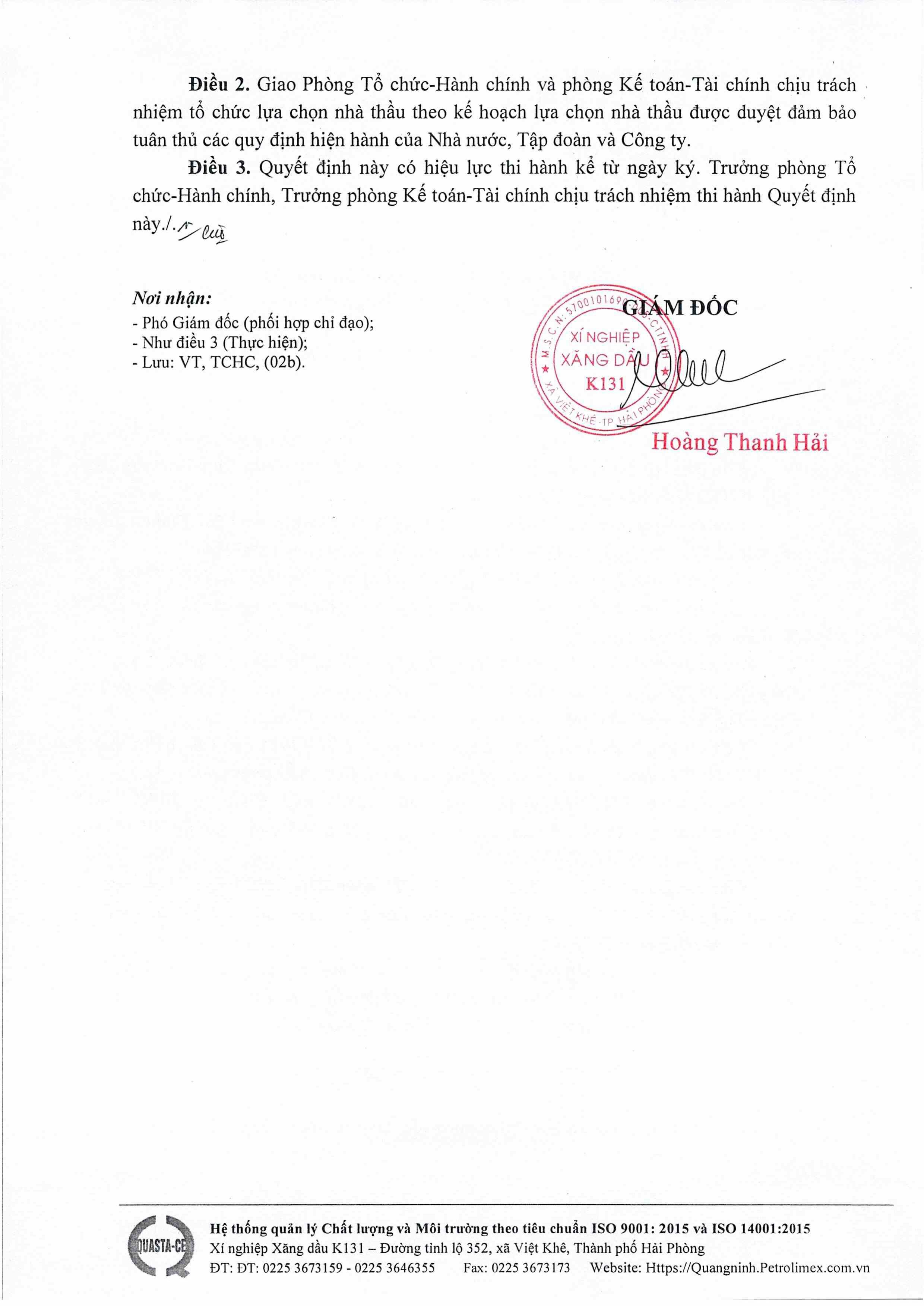 Xí nghiệp Xăng dầu K131 ban hành Quyết định V/v Phê duyệt kế hoạch lựa chọn nhà thầu Dự toán mua sắm: Mua sữa đặc bồi dưỡng bằng hiện vật cho NLĐ năm 2026