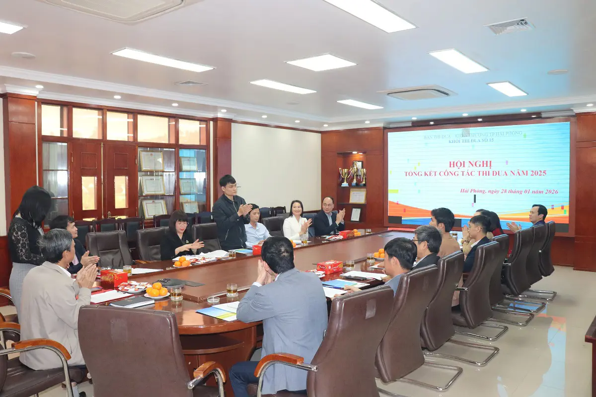 Kết quả bình xét thi đua, Khối thi đua số 15 thống nhất đề nghị UBND Thành phố Hải Phòng tặng Cờ thi đua cho đơn vị dẫn đầu là Xí nghiệp Xăng dầu K131, đồng thời đề nghị tặng Bằng khen của UBND Thành phố cho Viễn thông Hải Phòng. Về công tác tổ chức Khối năm 2026, hội nghị đã thống nhất bầu Viễn thông Hải Phòng giữ vai trò Khối trưởng, Công ty TNHH Thuốc lá Hải Phòng giữ vai trò Khối phó.