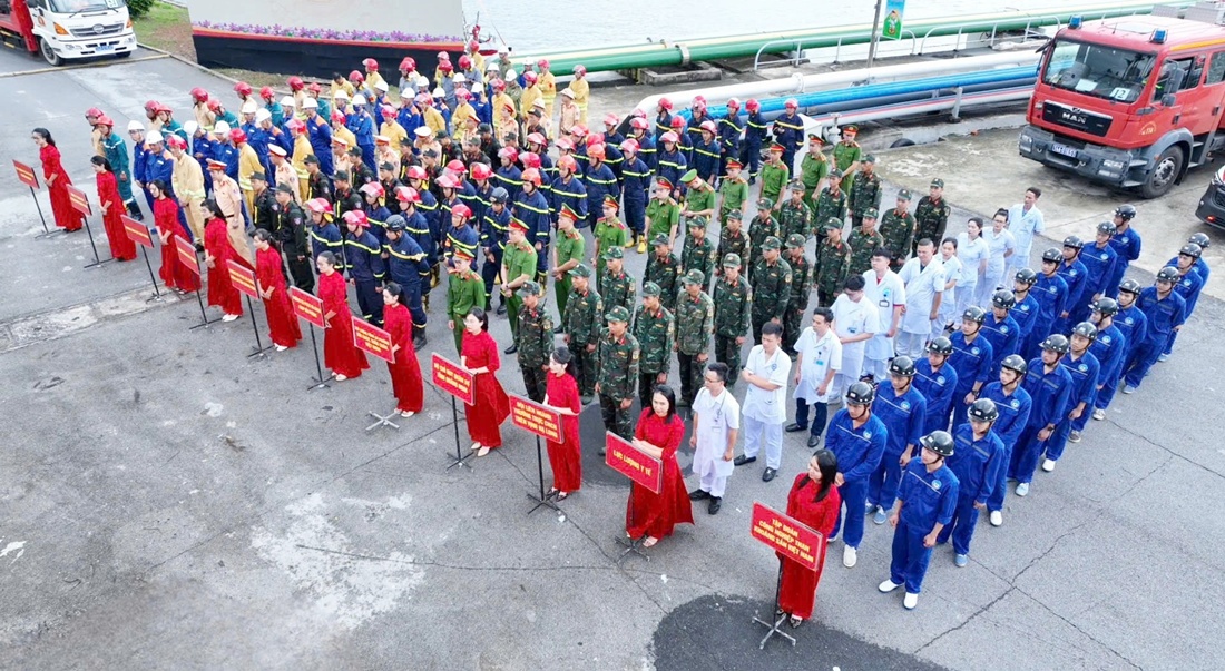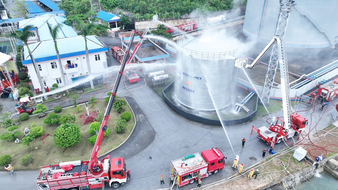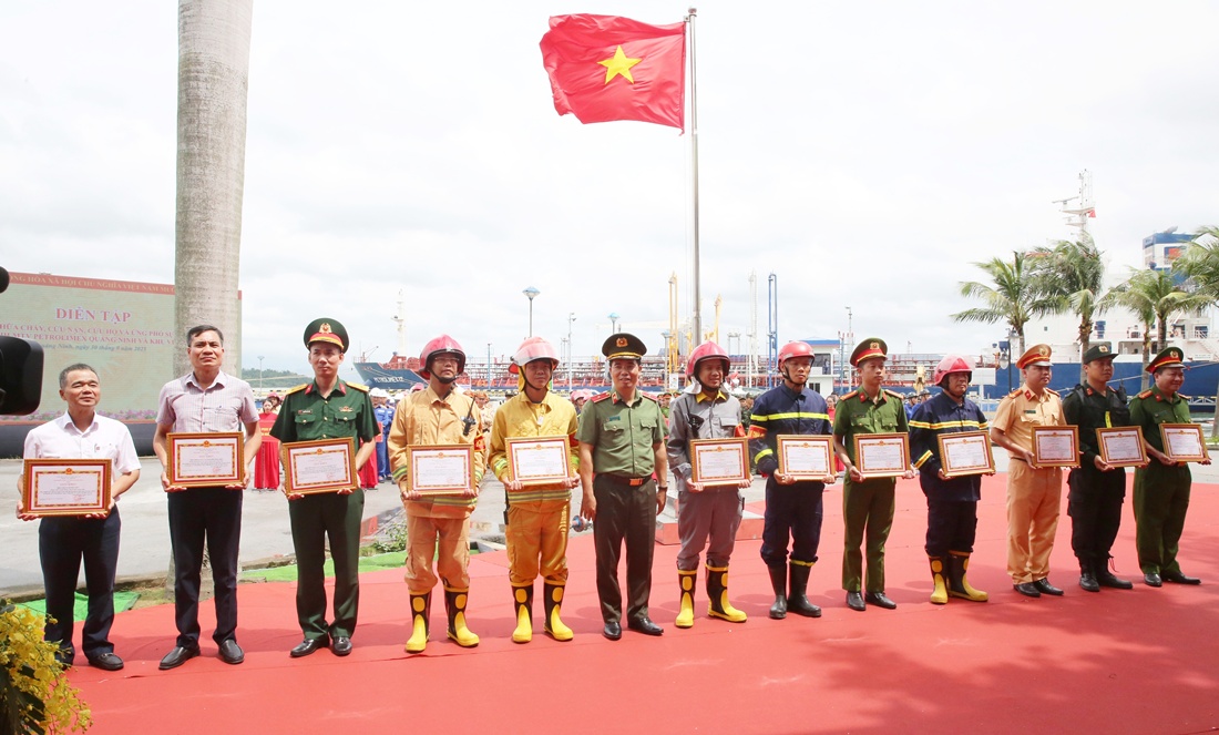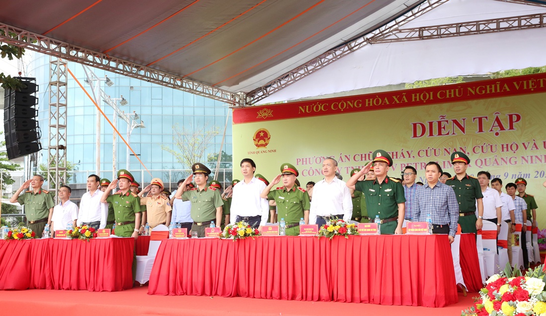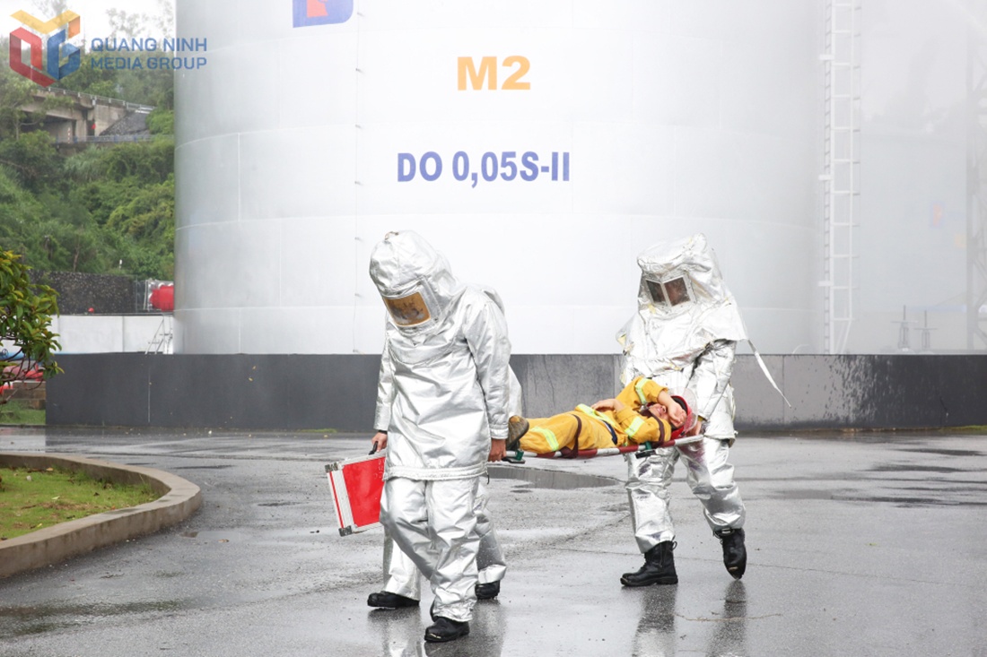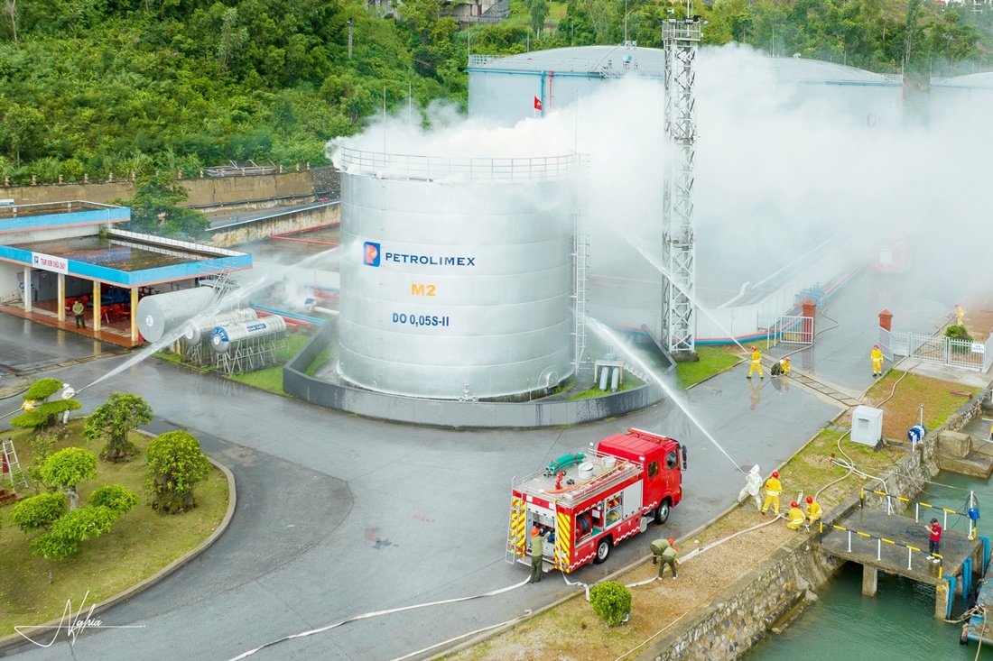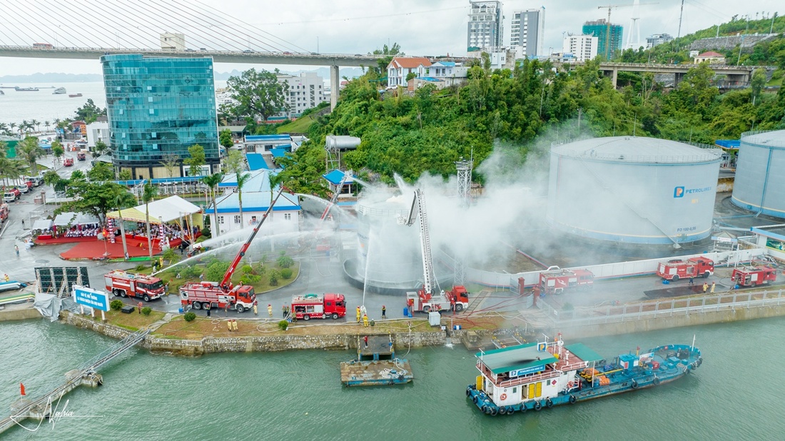 Cuộc diễn tập phương án quy mô cấp tỉnh với sự phối hợp tham gia của hơn 600 cán bộ, chiến sĩ phòng Cảnh sát PCCC&CNCH Công an các tỉnh/thành phố Quảng Ninh, Hải Phòng, Lạng Sơn, Công an phường Bãi Cháy và các phường lân cận, Bộ Chỉ huy quân sự tỉnh, đội liên ngành thường trực CNCH vịnh Hạ Long và lực lượng chữa cháy của một số đơn vị/doanh nghiệp trên địa bàn tỉnh. Trong đó, đội hình tham gia diễn tập của Petrolimex Quảng Ninh bao gồm 120 lao động thuộc lực lượng chữa cháy chuyên ngành Cảng dầu B12 và Xí nghiệp KVXD K130, 02 xe chữa cháy, 02 tàu chữa cháy & CNCH…