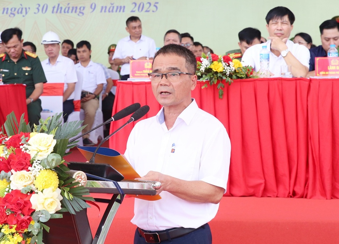 Đ/c Lê Hồng Sơn - Giám đốc Petrolimex Quảng Ninh phát biểu tại khai mạc cuộc diễn tập phương án
