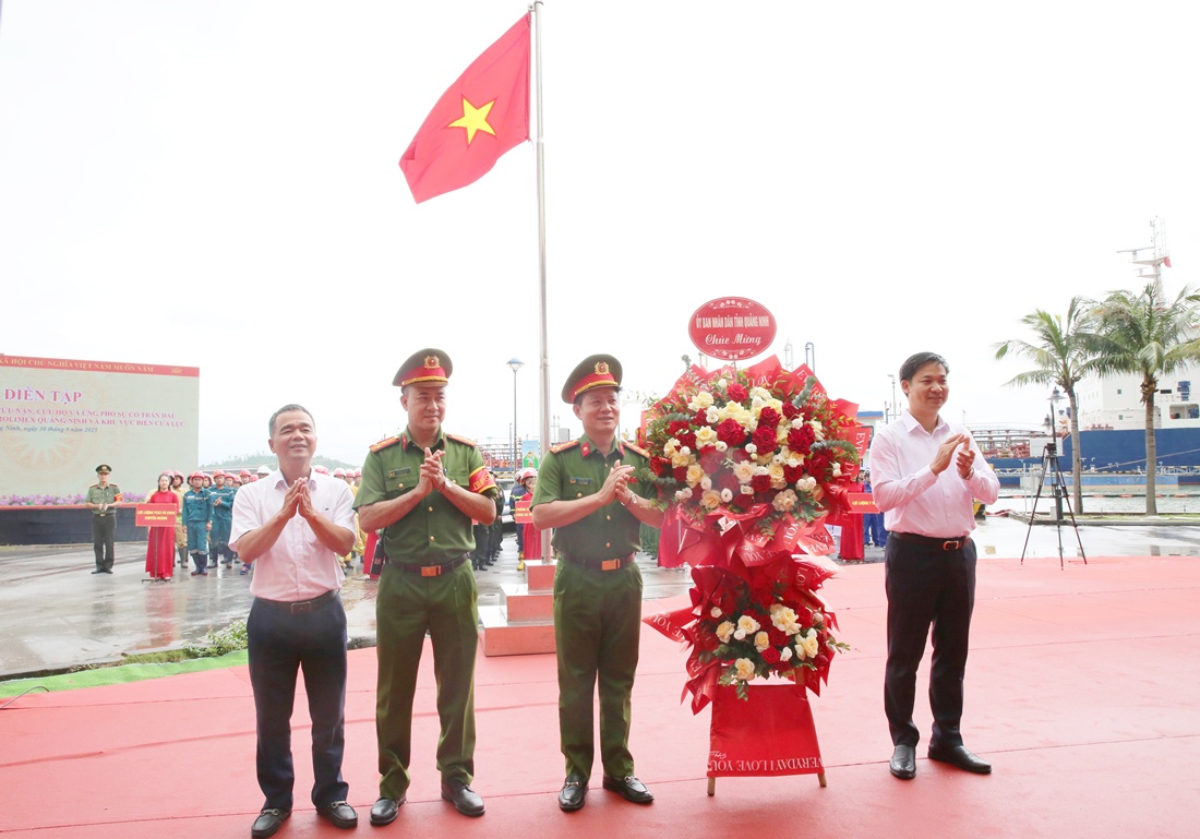 Lãnh đạo UBND tỉnh Quảng Ninh chúc mừng Ban tổ chức cuộc diễn tập phương án
