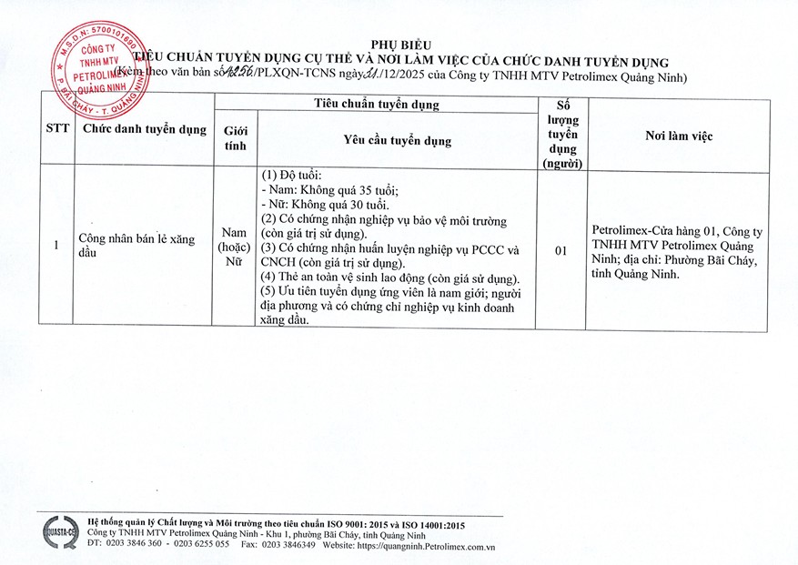 Nguồn: Petrolimex Quảng Ninh
